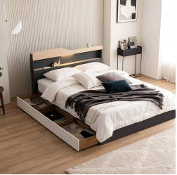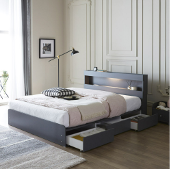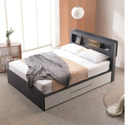 8. 크렌시아 리비앙 LED 벙커 포서랍 슈퍼싱글/퀸 침대 프레임+본넬매트, 그레이화이트