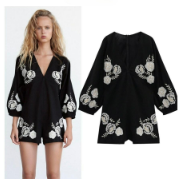 3. 블랙 브이넥 자수 린넨 ZARA 자라 여성 점프슈트 7521300