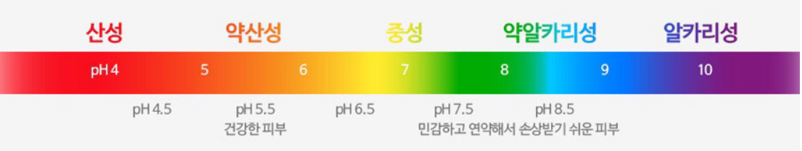 피부 보호 장벽의 핵심은 pH 입니다. pH는 산성 혹은 알칼리 성의 정도를 숫자로 표시한 지수로 중성인 pH7을 기준으로 숫자가 낮으면 산성, 높으면 알칼리성이라고 합니다.